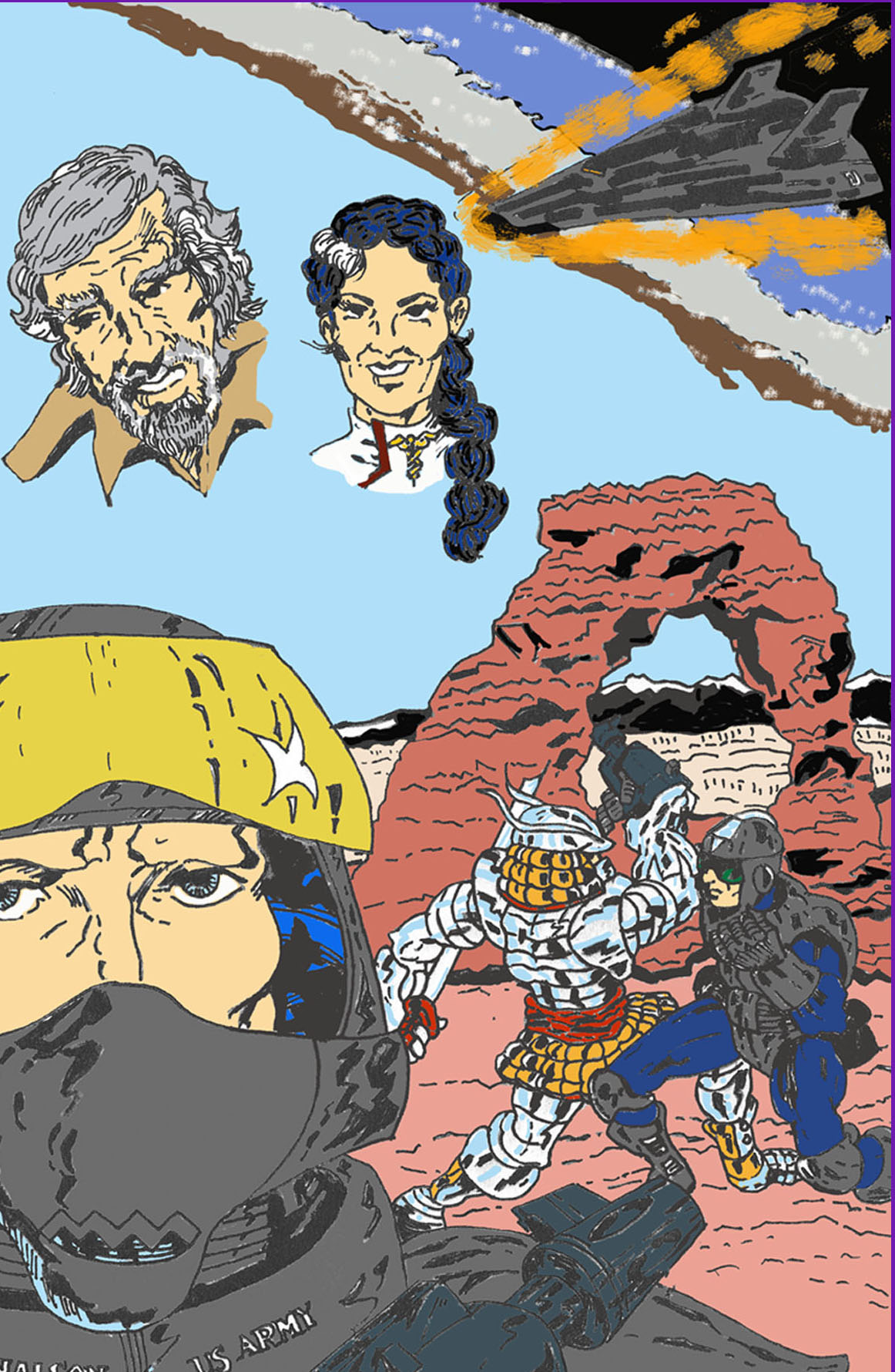 The dream ended and Battlefield Marshal Jack Donalson of the U.S. Army 82nd Airborne awoke breathing heavily. His hairless scalp and hairless brows were coated in a cold sweat and the metallic disc of the neural net interface at the base of his skull felt like it had just come out of a freezer. He didn’t have time to muse about the dream which had been the same as it always was. He needed to bring himself fully awake and get moving. He stepped in to the white-tiled master bathroom of his apartment, slid back the glass shower door and pulled the sprayer from its sliding wall clip. Leaning inside the stall, careful not to get his gray Army gym shorts and lower body wet, he commanded the water spray to full strength with a temperature of 110 degrees Fahrenheit. The shower complied and he doused his head and neck. Finished, he ordered the shower off, replaced the shower head and grabbed a charcoal gray towel from the towel rack and wiped down his head, face and shoulders. He checked the chronometer on the vanity. He didn’t have any time to spare. He had to get downstairs pronto for a breakfast meeting with Kirby, the newest member of his squad.